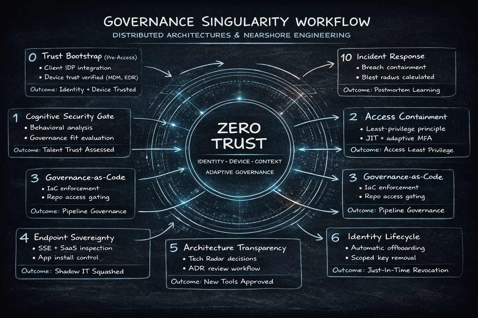 The era of the "wild west" nearshore is over. The risks are too high. The Shadow IT Blast Radius is too large. You cannot manage this risk with spreadsheets and Zoom calls. You need a platform.